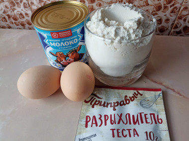 Для начала подготовьте необходимые ингредиенты для бисквита. Муку берите высшего сорта. Учтите, что возможно муки может понадобиться немного больше. Яйца нужны крупные отборные. Если яйца мелкие, можете взять 3 штуки. Сгущенку выбирайте качественную и проверенную, без растительных жиров. Она должна быть жирностью не менее 8,5%. Чтобы духовка успела нагреться до 180°С, включите её заранее (минут за 10-30 до начала приготовления).