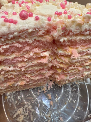 Очень понравился этот рецепт молочной девочки! Тесто для коржей делается просто, а сами коржи выпекаются быстро. Крем чиз просто великолепный, без масла! За счет тонкости коржей и их количества получается быстрая пропитка и очень нежный, тающий во рту вкус! На данный момент это мой самый любимый рецепт торта из всех что я пробовал!