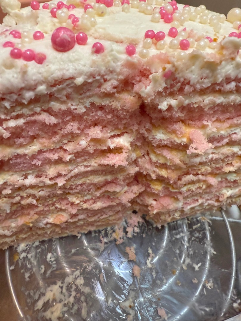 Пекла первый раз дочке на день рождения!!! Рецепт супер! Все подробно описано, просто и понятно! Крема сделала побольше, хватило отлично) как и предлагалось добавляла кокосовую стружку, супер! И дочь и все гости в восторге были! Спасибо за рецепт) сохранила себе! Я не профессионал, мб выглядит не идеально отточено, но очень вкусно)