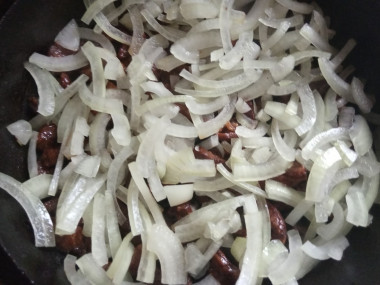 Лук очистите от шелухи, ополосните в холодной воде и нарежьте полукольцами или чуть мельче.