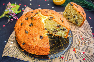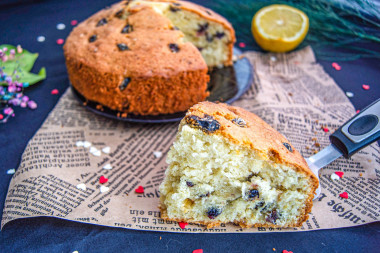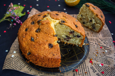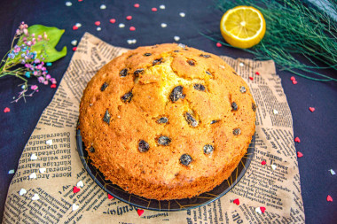 Готовый сладкий пирог с изюмом на сметане переложите на блюдо, слегка посыпьте сахарной пудрой и подайте к столу. Приятного аппетита!