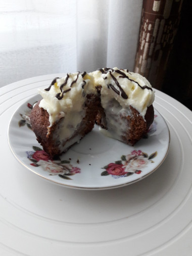 Шоколадные капкейки с крем чиз и карамелью самые вкусные и улетают в миг. Только начинку я сделала другую. Спасибо всем разработчикам-рецепт замечательный, всё подробно описано и в доступной форме.
