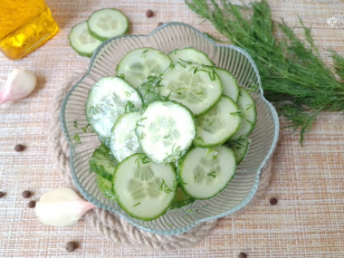 Салат из огурцов с чесноком и укропом подайте к столу в качестве закуски, лёгкого перекуса или в дополнение к основному блюду. Приятного аппетита!