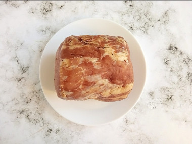 Как запечь мясо в микроволновке? Подготовьте продукты. Я взяла килограммовый кусок свиной шеи, но вообще подойдут любые части без костей, а кроме свинины — говядина. Учитывайте только размер микроволновки, не берите слишком большие куски. Но и маленькие также не нужно — при запекании мясо довольно сильно уменьшается в размере.
