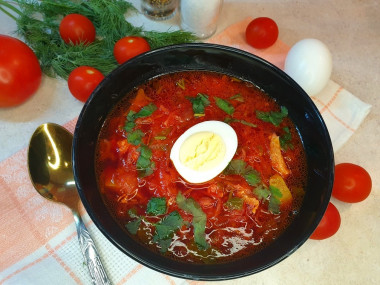 Что может быть привычнее, чем сварить борщ. Вариантов приготовления его масса. Мне понравился этот рецепт, плюс подача этого блюда с яйцом. Очень интересный подход. Бульон сварила из свинины, так как говядины не оказалось под рукой. Но все равно получилось вкусно. Спасибо автору за рецепт!