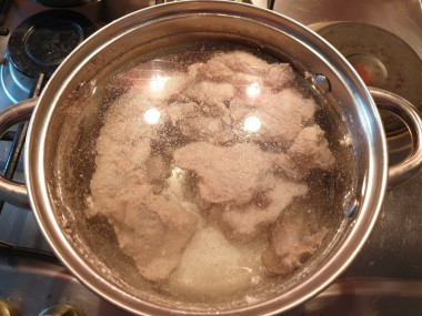 Говядину промойте. В кастрюлю влейте 3 л воды, добавьте мясо на косточке и отварите на небольшом огне, снимая пену, около 1 часа до готовности. Если у вас курица или индейка, варить достаточно 40 минут. Как выбрать кастрюлю читайте в статье в конце этого рецепта.