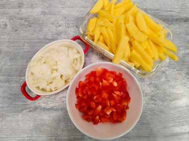 Картофель очистите, вымойте и нарежьте небольшими кубиками.