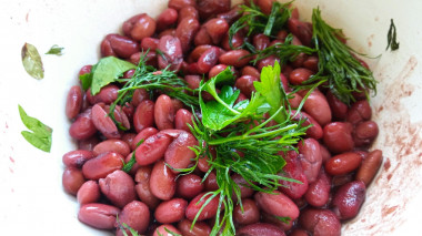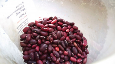 Фасоль предварительно замочите в холодной воде на 6-8 часов. Я обычно ставлю фасоль с вечера, чтобы утром ее отварить. В зависимости от сорта времени на замачивание может понадобиться больше или меньше, поэтому смотрите инструкцию на упаковке. Там же вы найдете необходимую информацию о времени варки того или иного сорта.