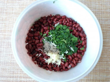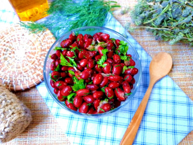 Салат из фасоли с чесноком и зеленью готов. Приятного аппетита!
