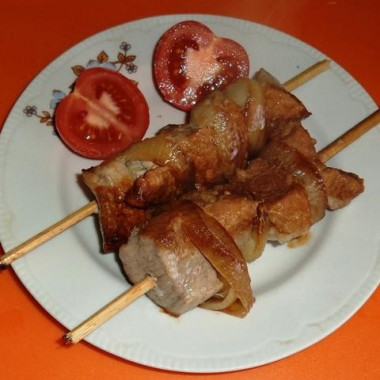 Шашлык на шпажках из свинины в духовке получается очень мягкий и сочный! Понравился всей семье. Лук добавила запекаться к мясу. Для нас это отличная альтернатива шашлыку на мангале, когда сезон шашлыков ещё не начался. Спасибо автору за рецепт!