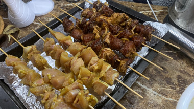 Как сделать шашлык на шпажках из свинины в духовке? Мясо для него лучше подходит не постное, с небольшим количеством жира. Лучший вариант - свиная шея. Также можно взять вырезку, карбонад или лопатку. Кроме перца вы можете взять абсолютно любые приправы и специи, по своему вкусу.