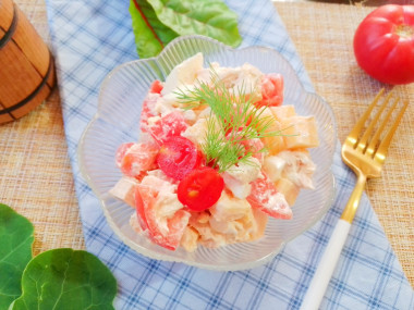 Салат с куриной грудкой сыром и помидорами покорил меня своей простотой и великолепным вкусом.