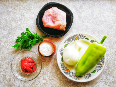 Как сделать свинину с томатной пастой на сковороде? Прежде всего подготовьте все необходимые продукты по списку. Если у вас свинина из заморозки, то её следует предварительно разморозить при комнатной температуре. О том как это правильно сделать читайте в статье в конце рецепта. Какую часть туши лучше использовать? Я чаще готовлю из шеи. Она обычно с жировыми прослойками, что делает мясо очень мягким и нежным в готовом виде.