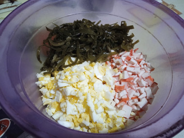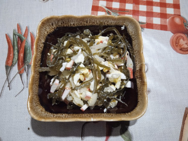 Рецепт салат из морской капусты с крабовыми палочками и яицом