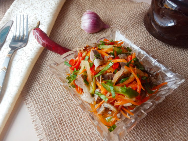 Не смогла оставить без внимания рецепт хе из куриных или индюшиных пупков (желудочков), потому что мы очень любим корейские салаты. Для хе взяла куриные желудочки. Отварила их в мультиварке, до мягкости. Готовила салат по рецепту автора и конечно в соответствии со своими вкусовыми предпочтениями ( по количеству специй, уксуса) Очень и очень вкусно! Аромат специй и пряностей словами не передать! Спасибо за рецепт, matanya!