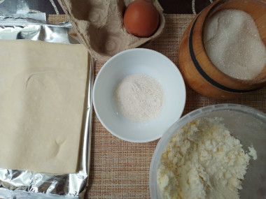 Слоеное тесто взяла готовое, это сильно сократило время приготовления, мне надо было лишь его разморозить.