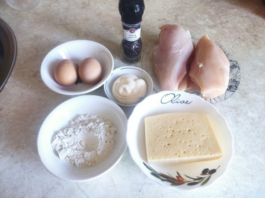 Как сделать куриное филе в кляре с сыром на сковороде? Очень просто! Подготовьте ингредиенты для кляра. Сметану лучше брать пожирнее, например 20-25% жирности.