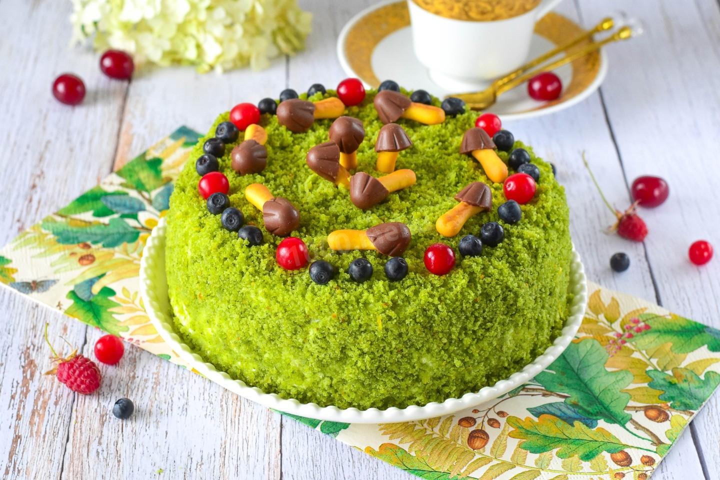 Зеленый торт украсьте по своему желанию и подайте к столу. Приятного аппетита!