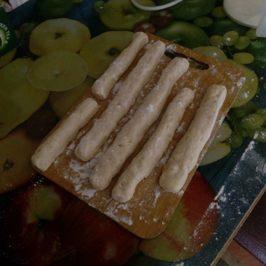 Слепите из части теста колбаску на доске, присыпанной мукой.
