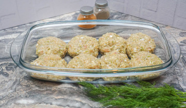 Выложите котлеты в смазанную растительным маслом форму для запекания и поставьте в разогретую до 180℃ духовку на 20 минут.