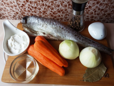 Подготовьте все необходимые ингредиенты, указанные в рецепте. Подойдет филе минтая или целая тушка. Если берете целую, увеличьте ее вес до 800 грамм. По необходимости разморозьте рыбу, но не до конца. Положите ее на нижнюю полку холодильника и доведите до слегка размороженного состояния, так ее будет легче нарезать. Кусочки будут более аккуратными и при нарезке не превратятся в бесформенную массу. Все о разморозке читайте в статье под шагами.
