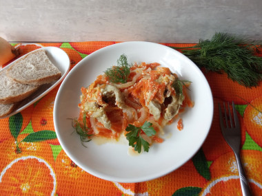 От доброты душевной много морковки и лука в положила . И еще сметанки добавила, получилось очень вкусно. Фото прямо с плиты в латки, но завтра рыбка останется на едине с мужем...