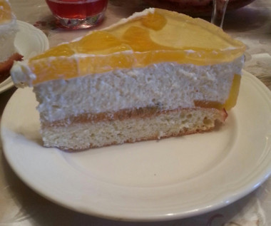 Спасибо за такой рецептик! Готовится очень быстро, просто!) Правда, вместо персиков я использовала консервированные абрикосы, но в остальном все в точности по Вашему рецептику. Мне очень нравится его некоторая многослойность, она дает непередаваемые вкусовые ощущения! чудо просто))) Нежность, легкость, блаженство))