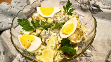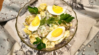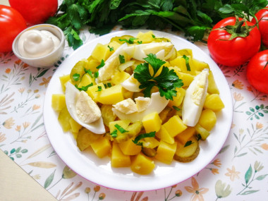 Салат картофельный с яйцами, перцем, огурцами и домашним майонезом