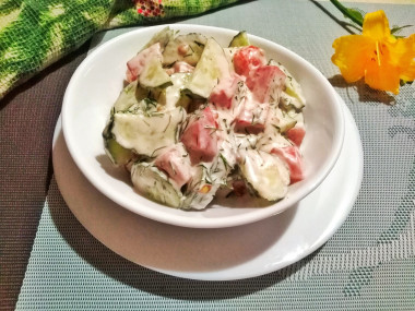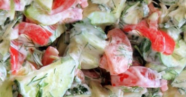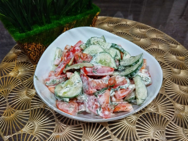 Очень люблю разные салаты, тем более из свежих овощей. Спасибо, что напомнили столь простой и невероятно вкусный рецепт салатика. Готовила из тепличных овощей, свежего укропа и сметаны 15%. Сделала салат очень быстро и сразу подала к столу. Если такой салатик постоит, то овощи размокнут, чего я не люблю.