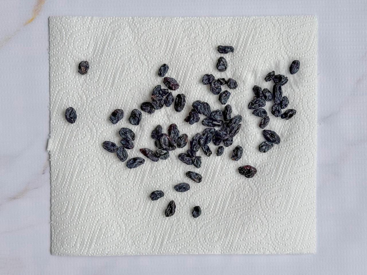 Как правильно распарить изюм? Залейте хорошо промытый изюм горячей водой и оставьте на 10-15 минут. За это время он станет мягким. Слейте воду и обсушите его бумажными полотенцами.
