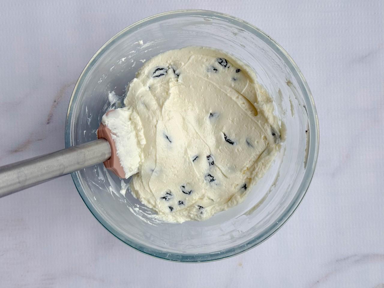 Взбейте творожную массу при помощи погружного блендера до получения пышной кремовой консистенции. Если творог нежный и мягкий, консистенция творога и сметаны вас устраивает, то можно обойтись без использования блендера. Достаточно просто размять творог вилкой.Шаг 5. Как вмешать изюм в творожную массу?