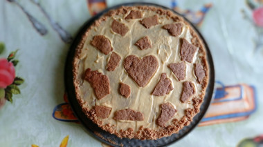 На верх торта выкладываем кусочки дополнительного коржа, которые мы оставили до его измельчения в крошку. Оставляем торт при комнатной температуре на 1 час.
