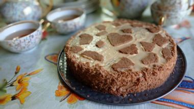 Через час обсыпаем бока торта крошкой и держим при комнатной температуре еще час. Затем убираем на несколько часов (лучше на ночь) в холодильник.