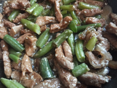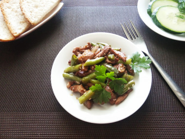 Хорошо перемешайте. Свинина со стручковой фасолью готова. Можно раскладывать ее по тарелкам и подавать к столу. Это вполне самодостаточное блюдо которое может обойтись и без гарнира.