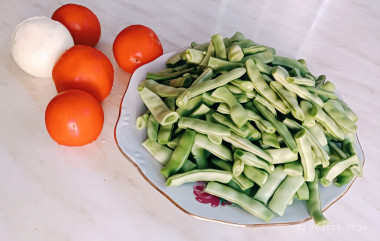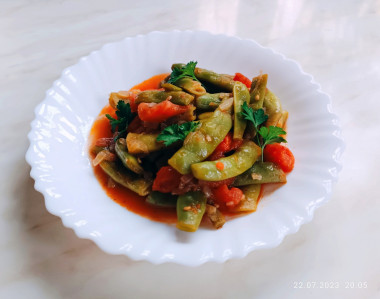 Зелёная стручковая фасоль с овощами. Зеленое лобио.