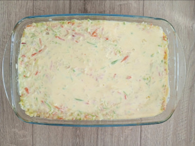Яйцо взбейте, соедините со сметаной и натертым на крупной терке сыром. Хорошо перемешайте.