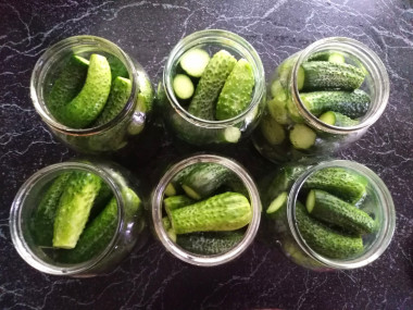 На одну трех литровую банку возьмите три столовых ложки соли, растворите их в воде и залейте в банку. Завяжите банку марлей и оставьте кваситься на трое суток. Через три дня слейте рассол из банки в кастрюлю, прокипятите его 15 минут и горячим залейте огурцы. На следующий день кипячение повторите и банку закатайте. Горячие банки укутайте и оставьте до полного их остывания. Холодные банки отправьте на длительное хранение в подвал. Удачной заготовки!