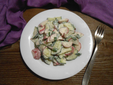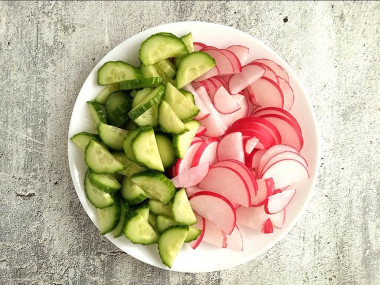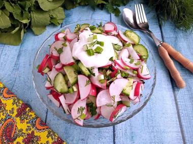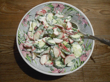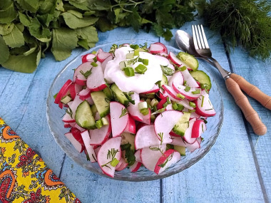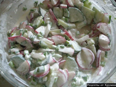 Интересное сочетание, сразу весной повеяло и очень захотелось попробовать салат из редиски с огурцом.