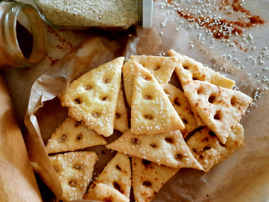 Было немного свободного времени, поэтому проэкспериментировала))) Сделала печенье более тонкое и толстенькое, часть посыпала кунжутом, а часть - паприкой. Мой выбор - толстенькое, посыпанное кунжутом. Печенье очень ароматное, нежное, хрустящее, чувствуется вкус сыра. Очень интересный рецепт! Автору огромное спасибо за него, а также за идею раскатывания теста между двумя слоями пищевой плёнки. Очень удобно, быстро, и всё остаётся чистенькое))) Рецепт рекомендую! Вот мой фотоотчетик)))