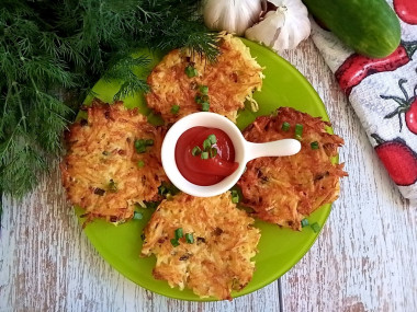 Вкусная, сытная еда, и готовится быстро. вот только я ни разу еще не приготовила, чтобы руки не "потереть" вместе с картошкой. последнее время нашла выход - картошку через электрическую мясорубку пропускаю на насадке для нарезки овощей - она тогда не сплошной массой получается, а как-будто через большую терку протерто