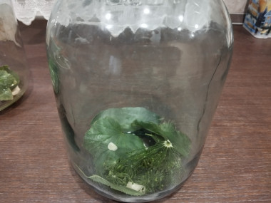 Приготовила все необходимые ингредиенты: помидоры, листья смородины и вишни, зонтики укропа помыла. Банки простерилизовала в духовом шкафу 15 минут при 150°.