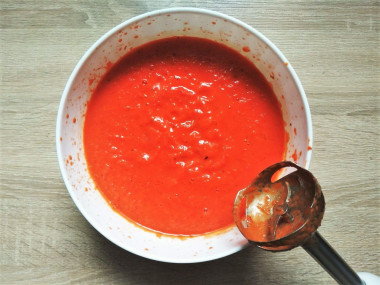 При помощи погружного блендера измельчите овощную массу в пюре. Наш соус готов!