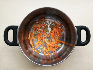 Добавьте морковь и обжарьте все вместе 2-3 минуты.