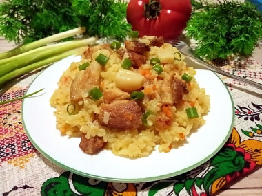 Как сделать рис с мясом в мультиварке? Подготовьте продукты по списку. Помимо свинины в этом блюде можно использовать любое другое мясо. Учитывайте, что время приготовления, а также вкус и калорийность блюда изменятся. Например, говядина готовится дольше, чем свинина, а куриное филе или индейка меньше.