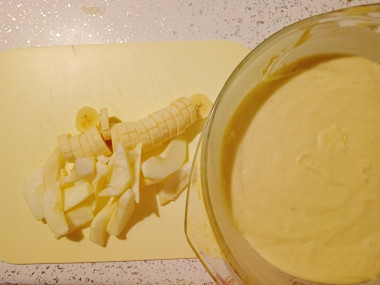 Пирог с яблоками на сметане в духовке пекла вечером на скорую руку. Неожиданно пришли гости и пришлось срочно что-то печь к чаю) Этот рецепт отлично подошел для этой цели. Тесто замешивается в считанные минуты, печется тоже быстро. У меня тоже не было времени размягчать масло естественным путем и я его подогрела в микроволновке, замечательная идея. Тесто получилось немного гуще, чем у автора, но я не стала его разбавлять, мне такая консистенция нравится. Для начинки взяла яблоко и небольшой банан. Яблоко очистила от кожуры, нарезала дольками и воткнула в тесто ребром. С бананом сделала то же самое. Пирог выпекала до сухой спички. Хочу заметить, что если в пирог добавляются фрукты, с большой вероятностью они опустятся на дно. Поэтому я в таких случаях на дно формы кладу кружок пергамента, чтобы пирог легко отошел от формы. А бортики смазываю маслом. Этот пирог получился высоким, сочным, мягким. Тесто пористое и воздушное. А фрукты придают коржу дополнительную сочность и аромат. Это очень вкусно!