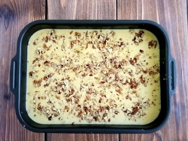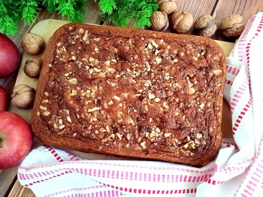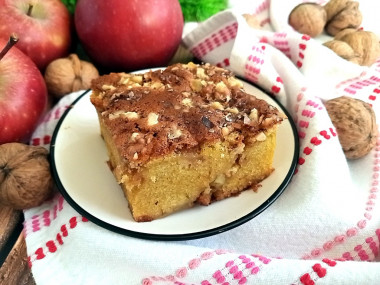 Испекла к чаю ароматную шарлотку с манкой и яблоками в духовке. Очень мягкая, сочная и вкусная выпечка! Мякиш у меня получился желтым, наверное из-за ярких желтков домашних яиц. Верх присыпала рубленными грецкими орехами.