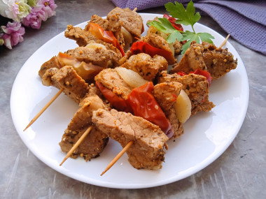Рецепт великолепный! Маринад из соевого соуса самый лучший, как по мне. Свинина получилась мягкой, сочной, нежной и ароматной. Лук тоже хорошо приготовился. А вот перец болгарский не только красиво смотрится на шашлычках, но и придаёт оригинального вкуса мясу.