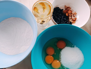 Как сделать кекс английский классический с изюмом? Подготовьте все необходимые ингредиенты. Муку берите высшего сорта, яйца - С1 или С0. Яйца и масло примерно за час до начала приготовления достаньте из холодильника, они должны быть комнатной температуры. Если вы планируете использовать ванильный сахар вместо ванилина, берите его в 10 раз больше чем указанное количество.