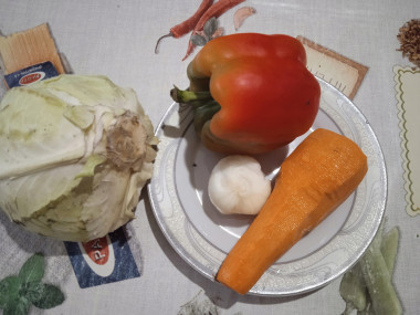 Как сделать салат осенний с капустой, болгарским перцем и морковью на зиму? Сначала подготовьте все необходимые ингредиенты по списку. Заранее вымойте банки с содой, простерилизуйте их и крышки к ним, о том, как это сделать читайте подробнее в ссылке в конце рецепта. Болгарский перец выбирайте спелый и сладкий. По желанию можно добавить в салат свои любимые специи.