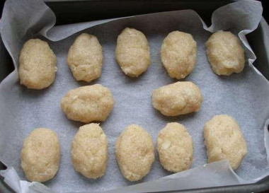 Сформируйте шарик, размером чуть больше абрикоса. Постарайтесь сделать так, чтоб на колобочках не было трещин, иначе клецки могут развалиться при варке.